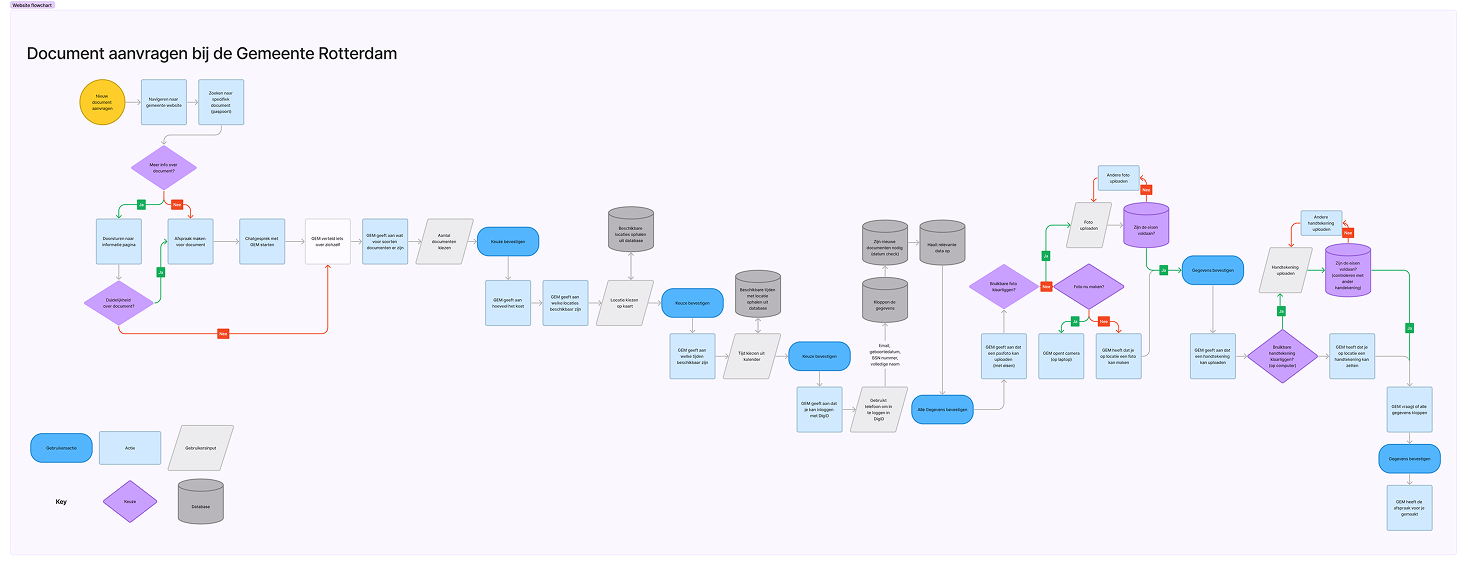 Ik heb de flowchart gemaakt om de verschillende paden in kaart te brengen. Inzichten vertaald naar ontwerprichtlijnen.